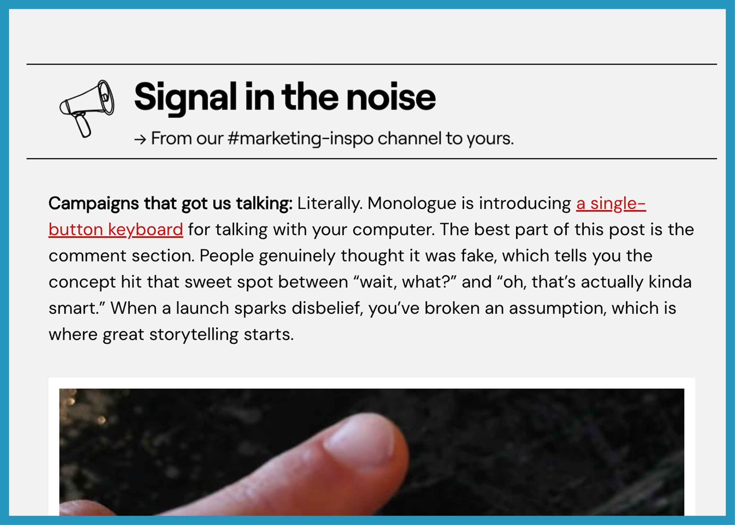 So when a branded newsletter actually feels worth subscribing to for its own merit, it’s getting added straight to my ideas log.